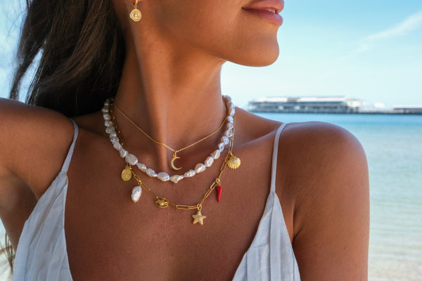 Escape to the coast with the Ocean Dreams Collection, our fine jewellery pieces inspired by the serene beauty of the sea. Delicate shells and sculpted starfish meet classic charms and cherished symbols in shimmering gold and silver, accented with oceanic hues.