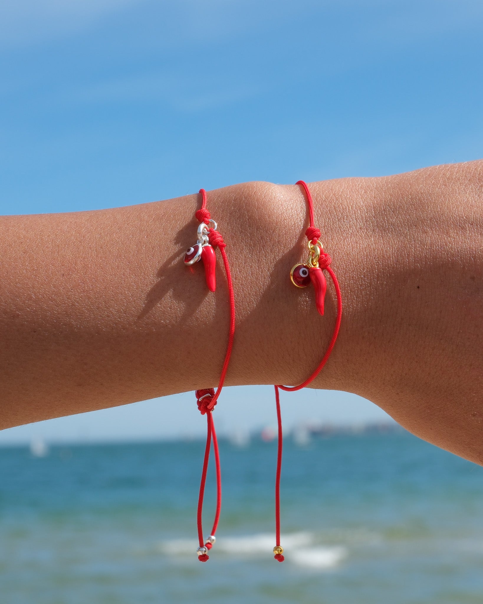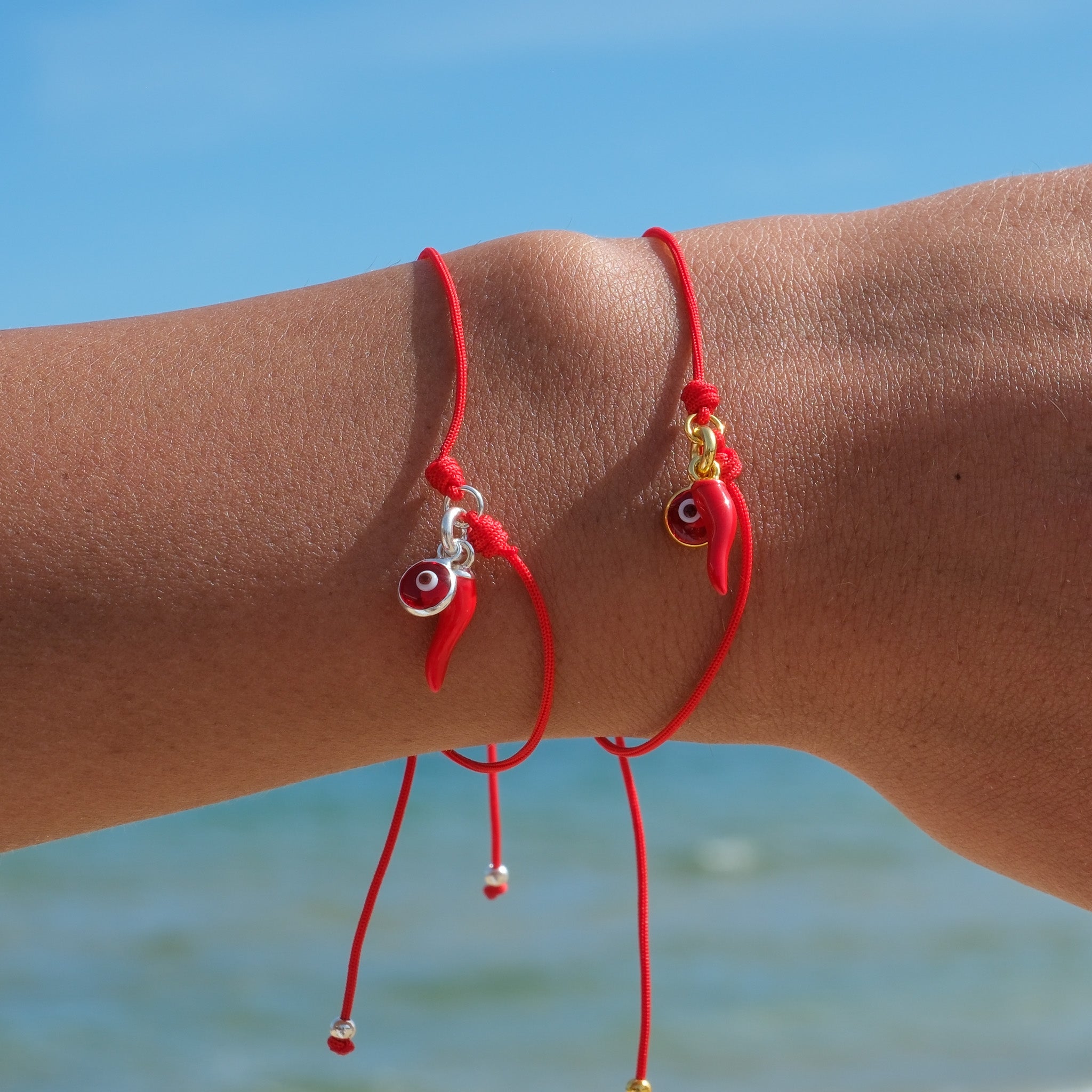 Add a delicate pop of color with our Mini Red Chilli fine cord bracelet. This petite, vibrant chilli charm and evil eye is believed to ward off negative energy while bringing positive vibes your way.