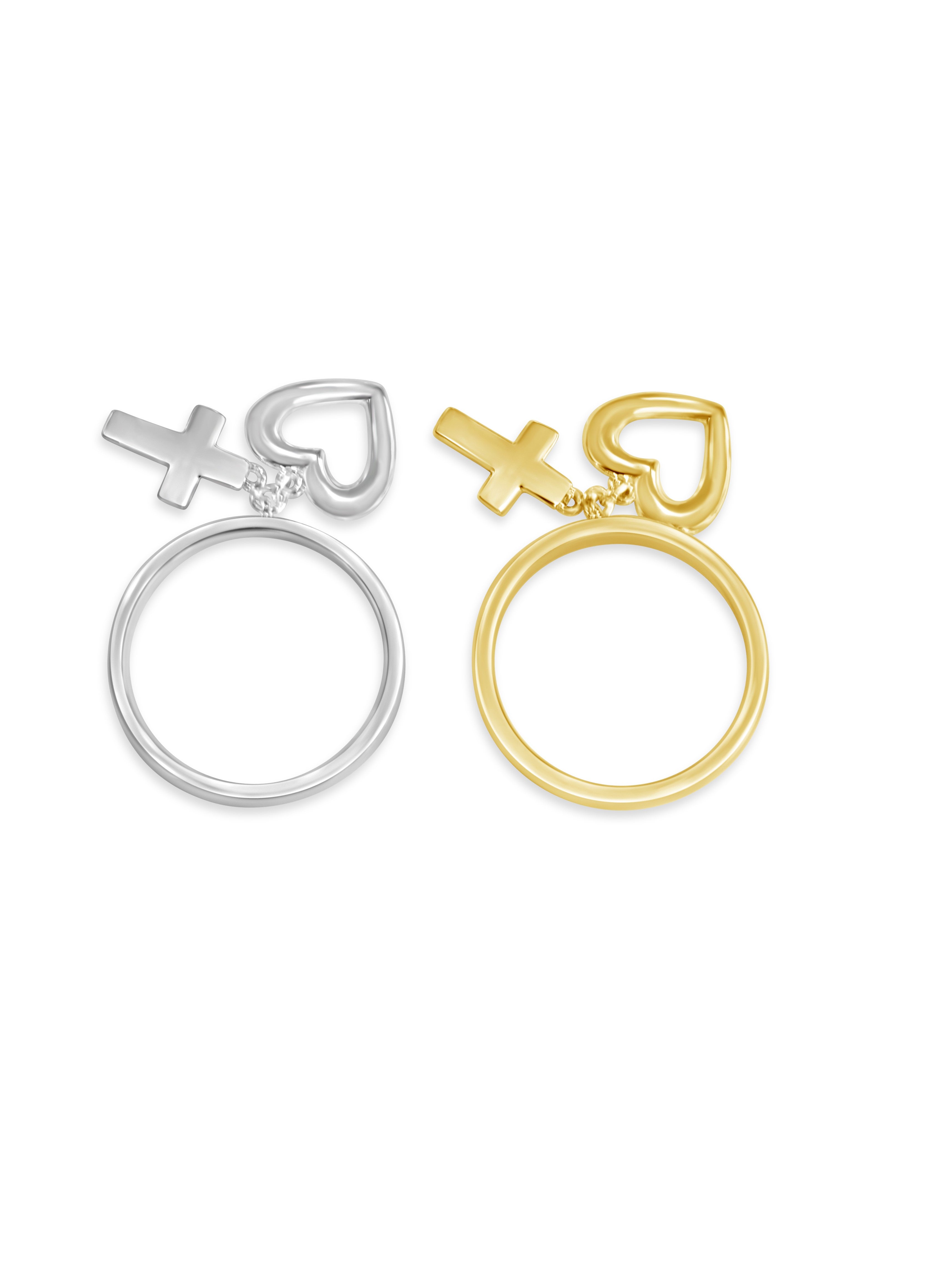 Indulge in everlasting elegance with our Eternal Blessings Ring. Crafted from sterling silver, this ring features delicate cross and open heart charms. Add a touch of faith and love to any outfit with this timeless piece.