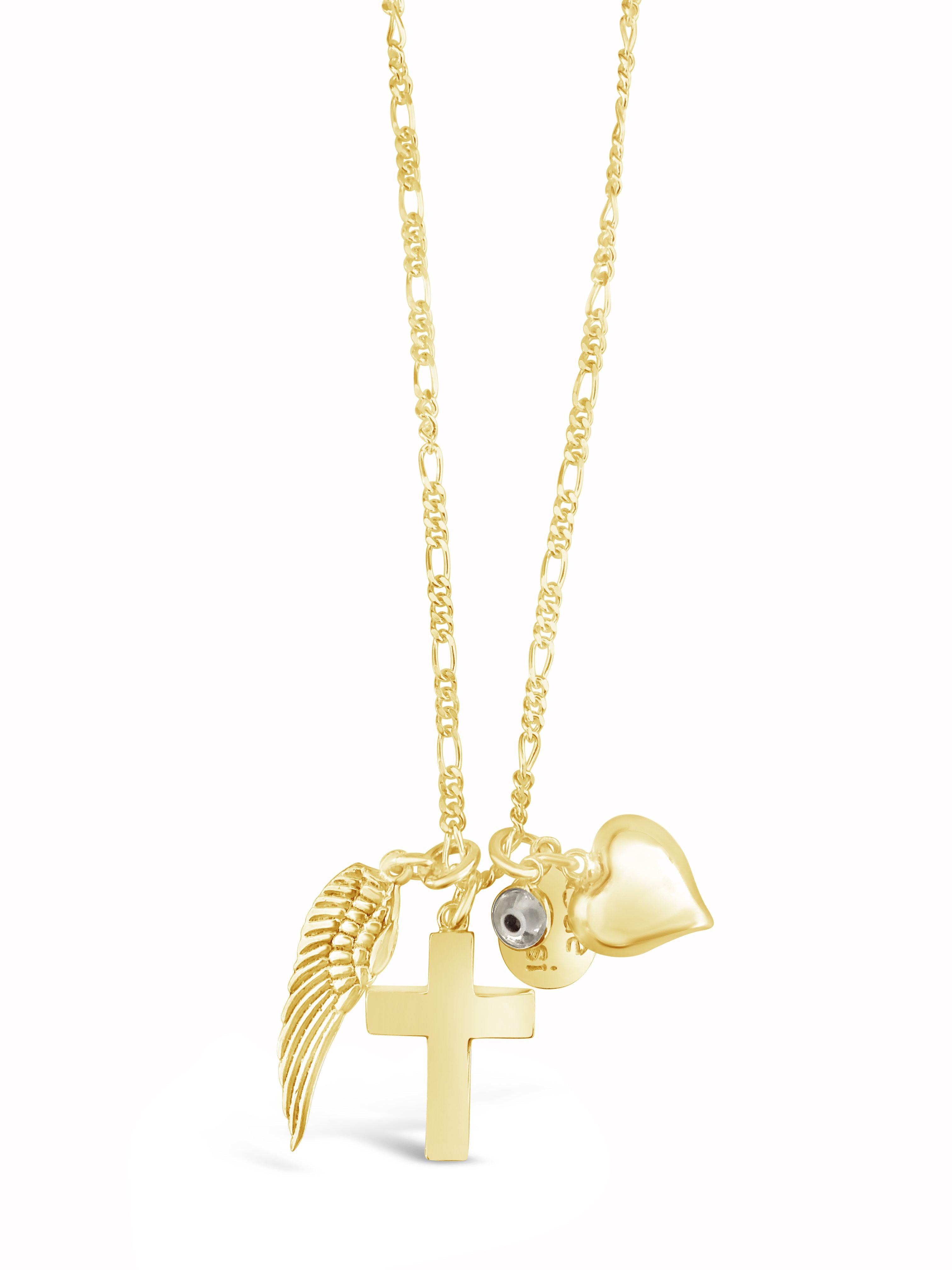 Our wishes & dreams necklace, featuring the four powerful symbols of the Heart, Cross, Wing, and Eye, is worn to represent a complete circle of Love, Faith, Freedom, and Protection.