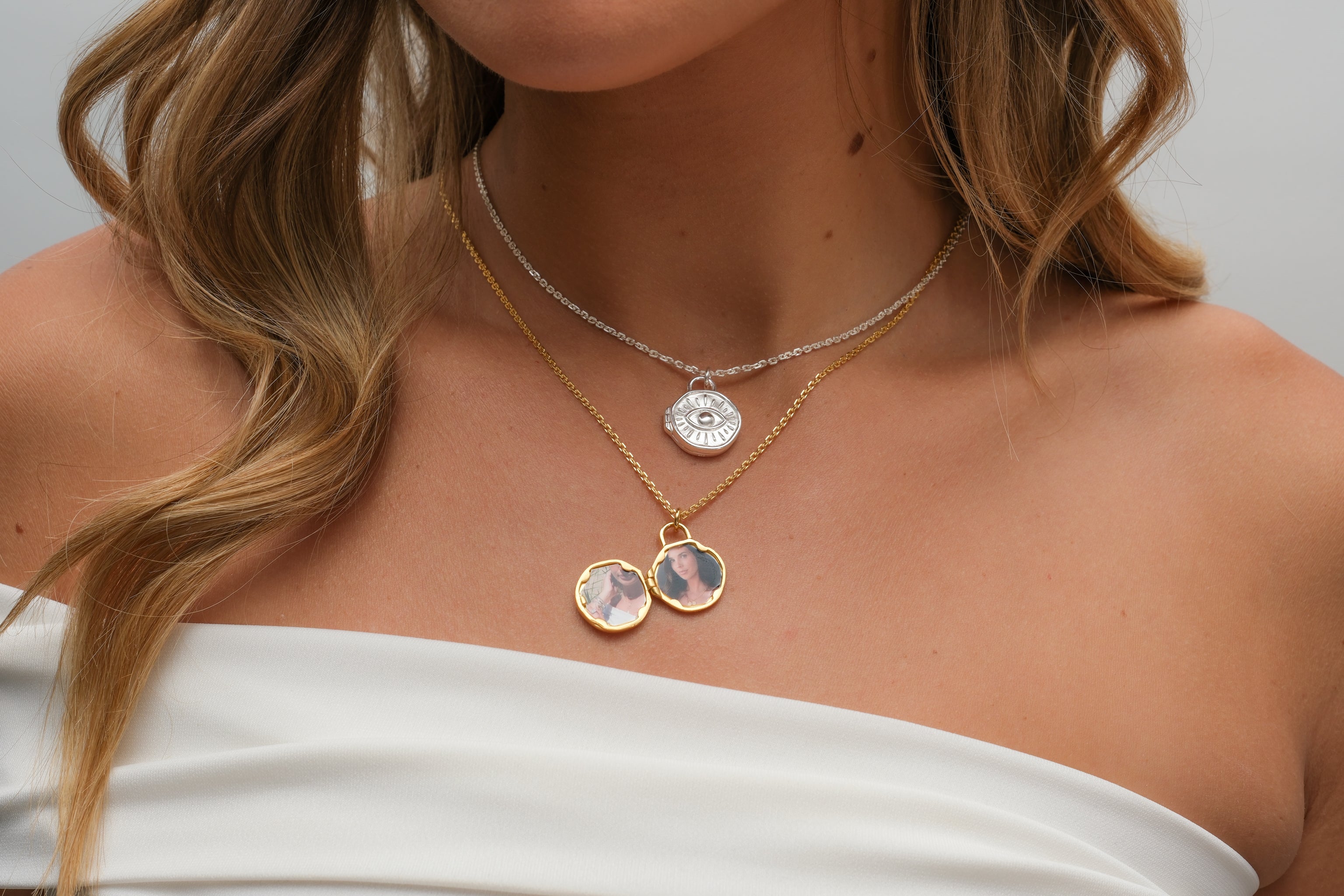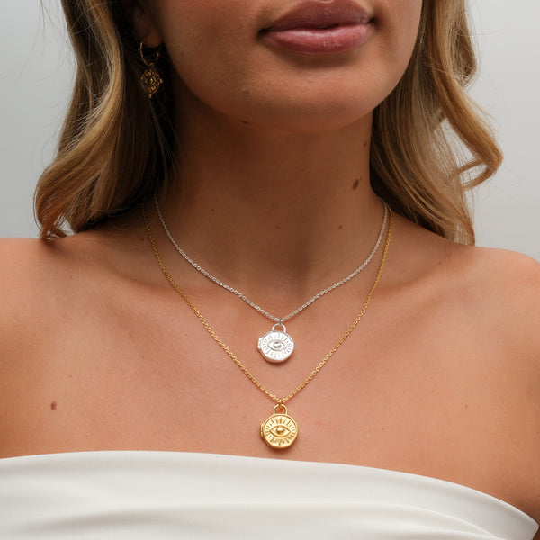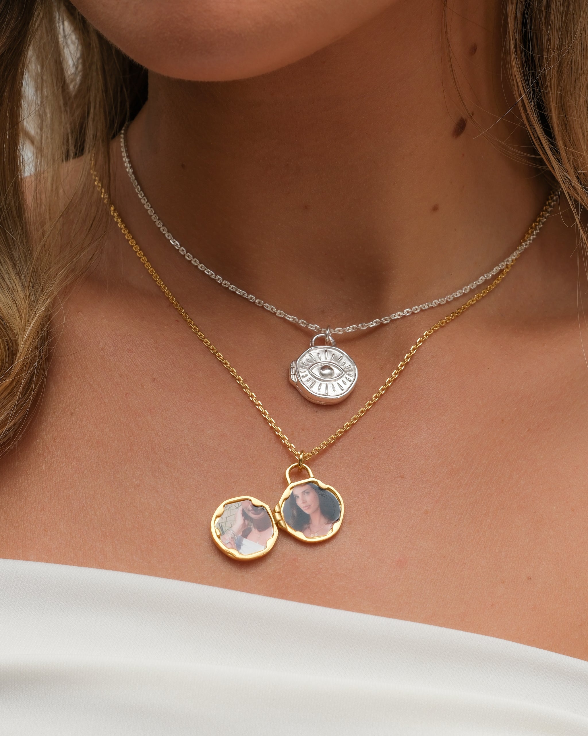 Keep memories close with our Eye Locket Me Forever Necklace. It opens to reveal a special space where you can treasure your most cherished moments. Simply upload your favourite photos, and we'll place them inside this meaningful keepsake. It's a beautiful blend of ancient symbolism and personal connection, allowing you to carry loved ones or special memories with you, stylishly protected and always near your heart.