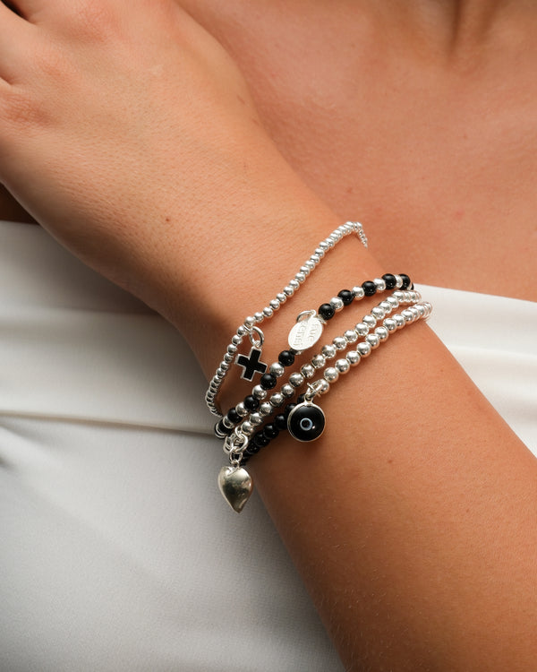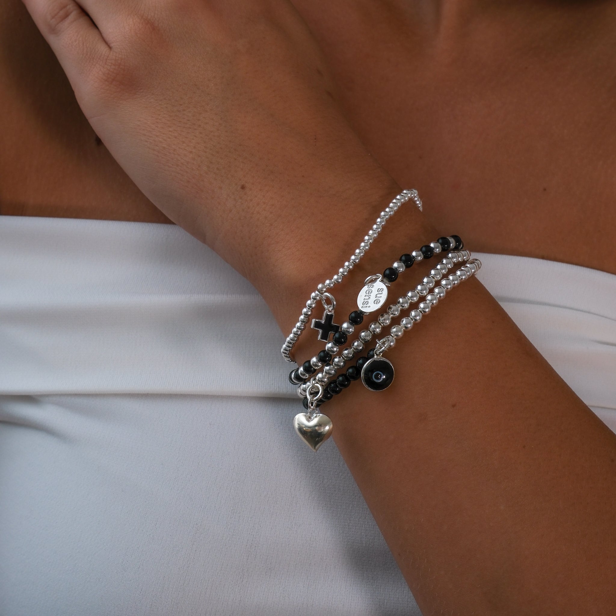 This elegant set embodies love, faith, and protection, crafted in sterling silver and accented with striking black onyx. A timeless design perfect for meaningful style.The perfect set to ignite your Sue Sensi bracelet stack or add to it.