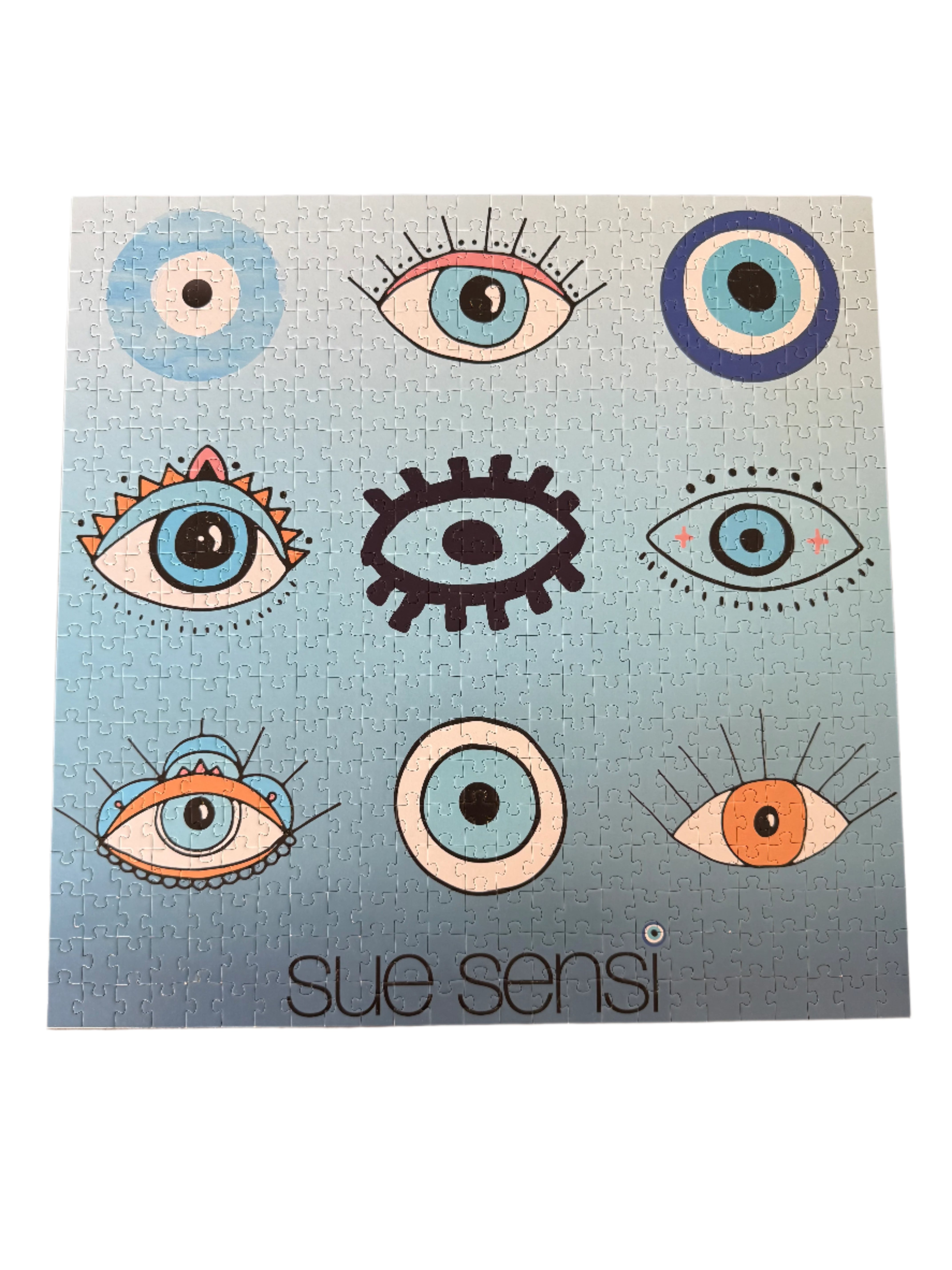 Build your unique Sue Sensi puzzle by layering evil eye pieces for a touch of style and powerful protection.